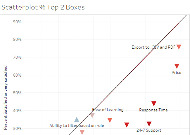 Technique to show how responses rank when broken down by different dimensions. Great technique for showing rank and magnitude at the same time.