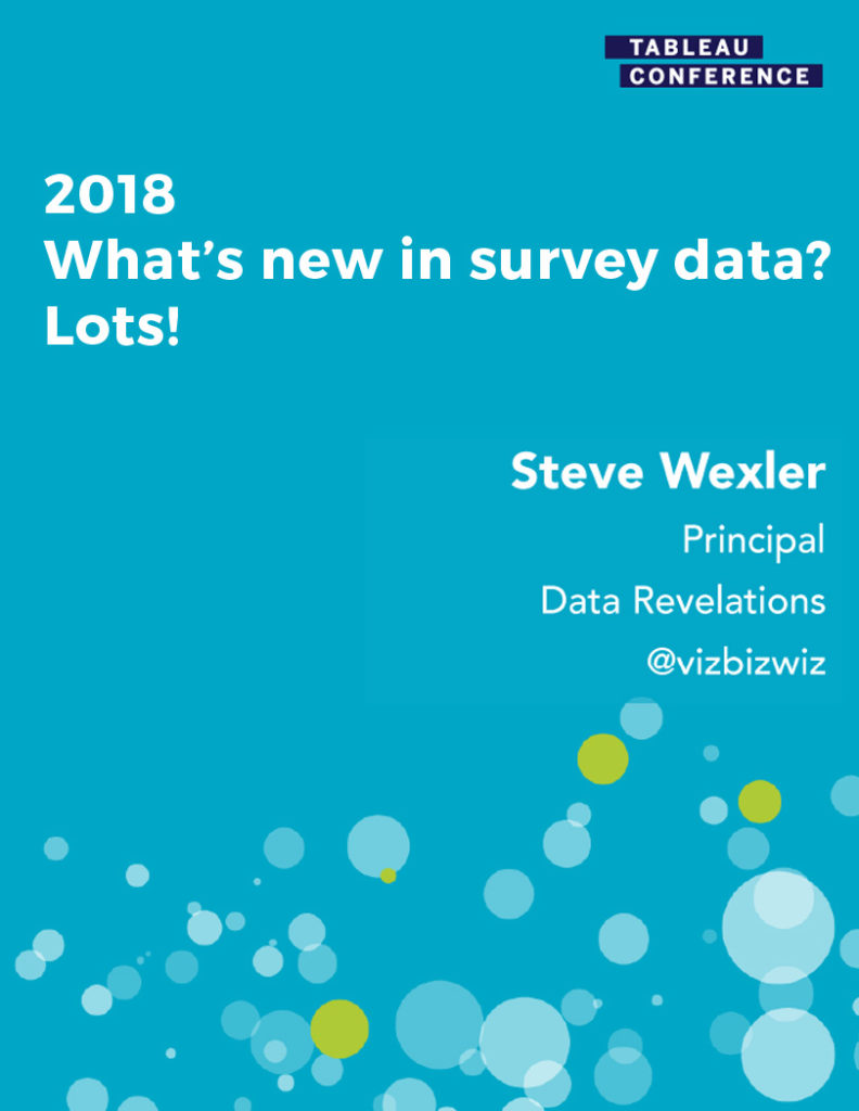 Steve’s presentation from the 2018 Tableau Conference: “What’s new with survey data? Lots!”
